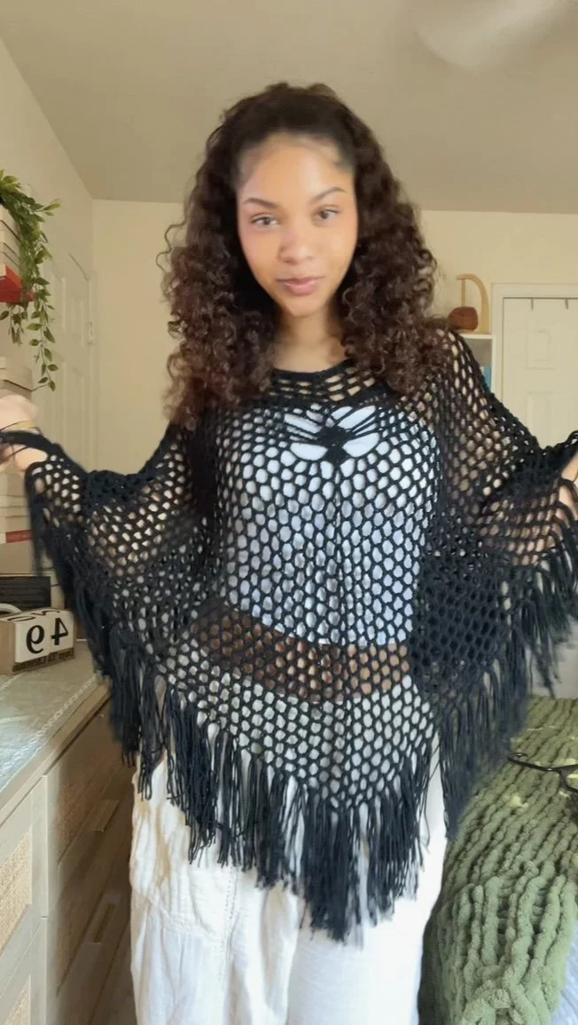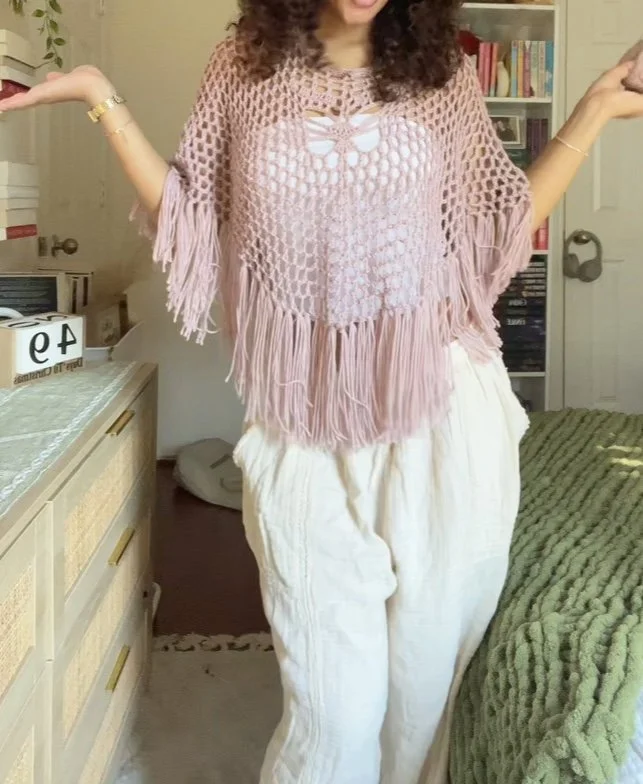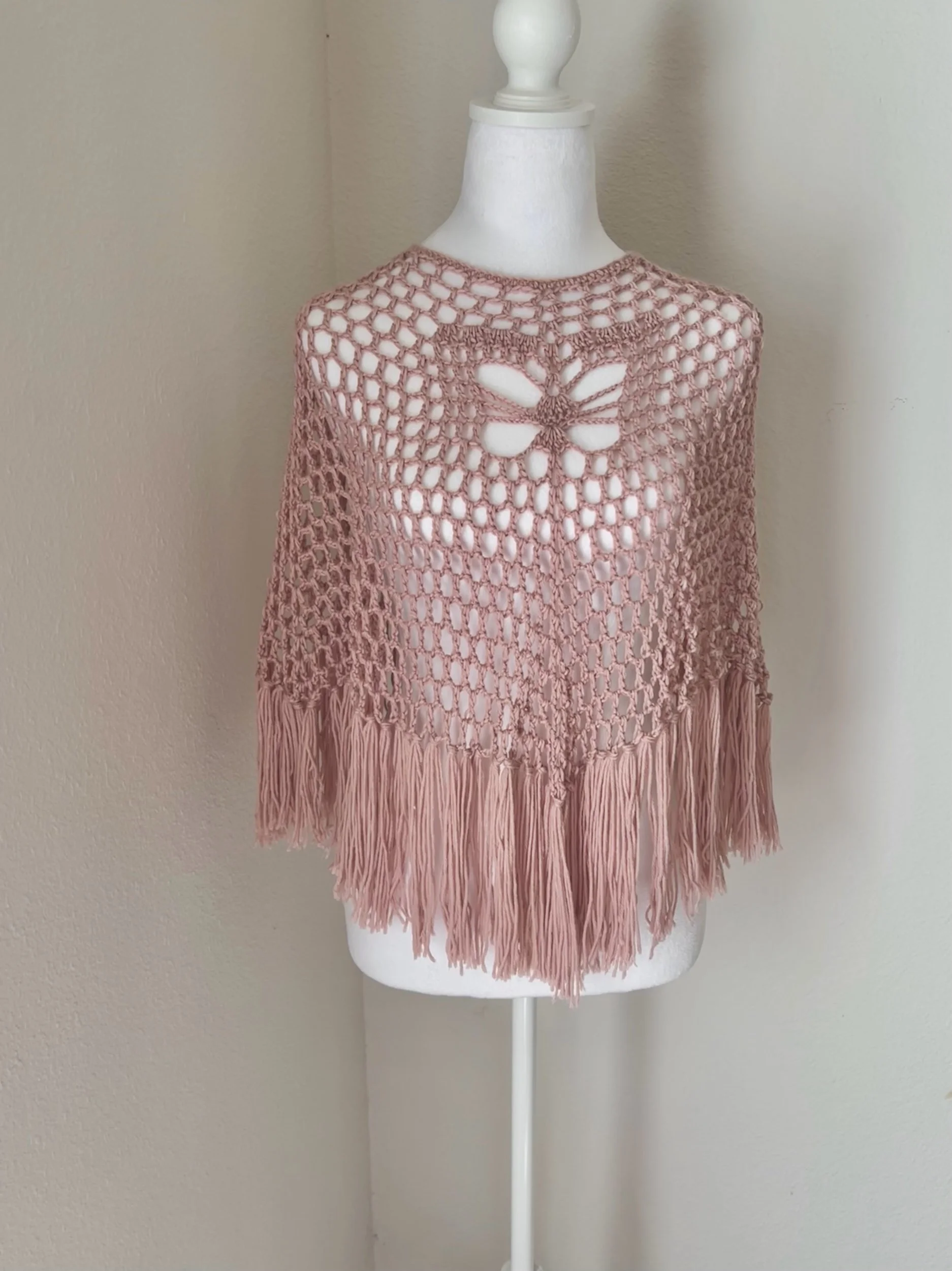 Handmade crochet poncho top using 60% Acrylic & 40% Polyamide “Baby Bee Sweet Delight” yarn . Lightweight, breathable, and perfect for layering or warm weather.